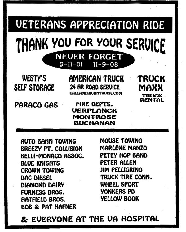 We sponsored and supported this motorcycle ride in from Yonkers to the VA Medical Center in Montrose, NY to help support our veterans.